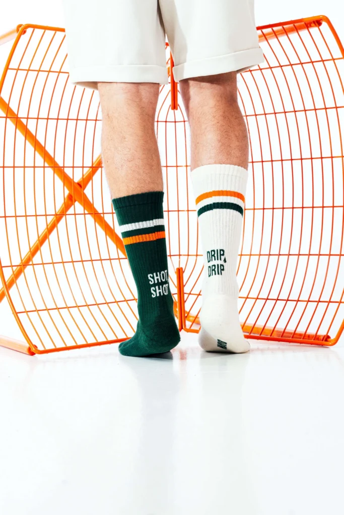 Urodzinowe skarpetki, jak wszystkie produkty Many Mornings zostały zaprojektowane i wyprodukowane w Polsce. Uszyte w Aleksandrowie Łódzkim, gdzie tradycja przemysłu włókienniczego sięga jeszcze XIX wieku. Model skarpetek lifestylowych Drip and Shot to historyczna nowość w ofercie Many Mornings. Poza designem inspirowanym najlepszymi produktami z lat 90-tych, modele posiadają specjalny system dziania pozwalający na lepszą cyrkulację powietrza.