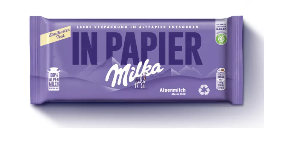 Kiedy słyszymy “Milka”, od razu nasuwa nam się obraz delikatnej, mlecznej czekolady, która rozpływa się w ustach, ale… czy myślimy o jej opakowaniu? Firma, sprzedająca do tej pory słodkości w plastikowych opakowaniach wkracza na nową ścieżkę innowacji – testuje papierowe rozwiązanie dla swojej ikonicznej alpejskiej czekolady.