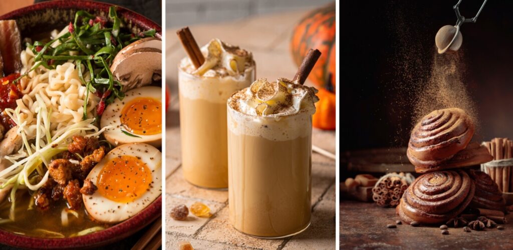 Jesień 2025 w Warszawie pachnie kawą z przyprawami, aromatycznym ramenem i świeżo pieczonymi cynamonkami. W sondzie ulicznej przeprowadzonej przez Food and Design najczęściej powtarzały się cztery hasła: pumpkin spice latte, ramen, cynamonki i dynia Hokkaido. Każdy z tych trendów mówi coś więcej o naszych kulinarnych nastrojach – o potrzebie komfortu, powrotu do natury i o tym, że jedzenie coraz częściej staje się częścią estetycznego stylu życia.