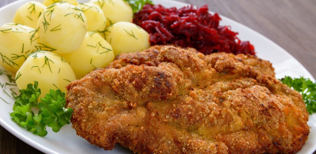 Czy kotlet schabowy rzeczywiście jest prawdziwie polski? Otóż nie! Zanim zagościł na polskich stołach, był już popularny w innych państwach europejskich. Jednym z jego najstarszych przodków był “Wiener Schnitzel”, czyli kotlet wiedeński, który pojawił się w kuchni austriackiej i niemieckiej już w XIX wieku. Schnitzel przyrządzany był z cielęciny, panierowany w bułce tartej, jajku i mące, a następnie smażony na maśle lub smalcu. To wykwintne danie szybko zdobyło popularność w całej Europie, stając się symbolem kuchni austriackiej.