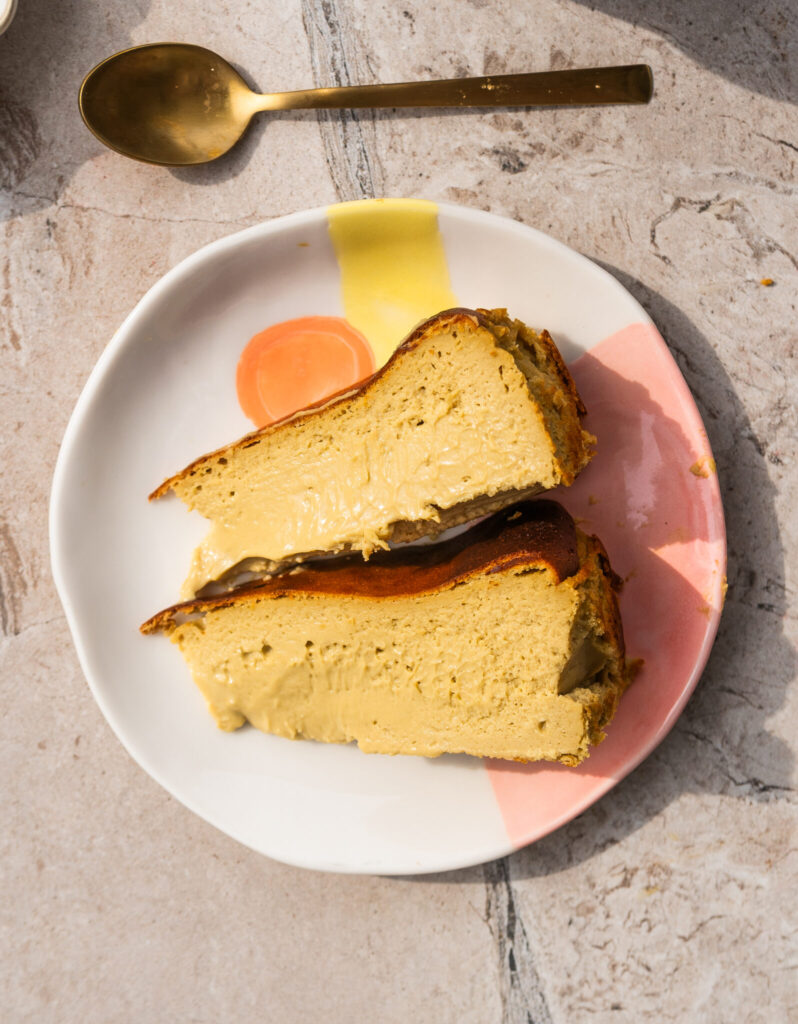 Klasyczny sernik jest zazwyczaj gęsty i jędrny, za to baskijski – lekki i kremowy. Jego konsystencja to coś między sufletem a creme brûlée, co w połączeniu z “przypaloną”, karmelizowaną powłoką sprawia, że nie można mu się oprzeć.