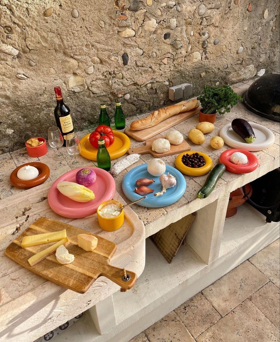 Naczynia to nie tylko nośnik potraw, ale i element kompozycji. Letni stół kocha naczynia niedoskonałe: ręcznie robione miski, talerze o organicznych kształtach, kolorowe szkło.