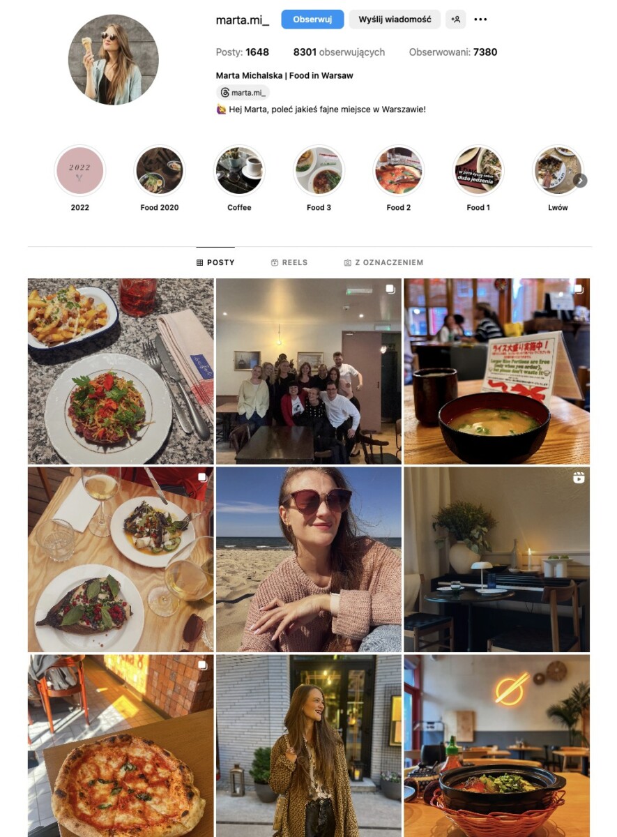 W Social Mediach znajdziecie oczywiście wiele powielanych treści, ale nie da się tego uniknąć. Po otwarciu nowego – “modnego” miejsca – “foodies” ochoczo do niego pędzą. Później widzimy wysyp rolek i relacji z tego samego lokalu. Każdy twórca posiada jednak swój odrębny styl i opinię, za którą podążają jego odbiorcy. Chcą oni poznać naszą perspektywę i utożsamiają się z konkretnym sposobem recenzowania lokali. Myślę, że nawet przy obecnej konkurencji, każdy jest w stanie odnaleźć swoją niszę.