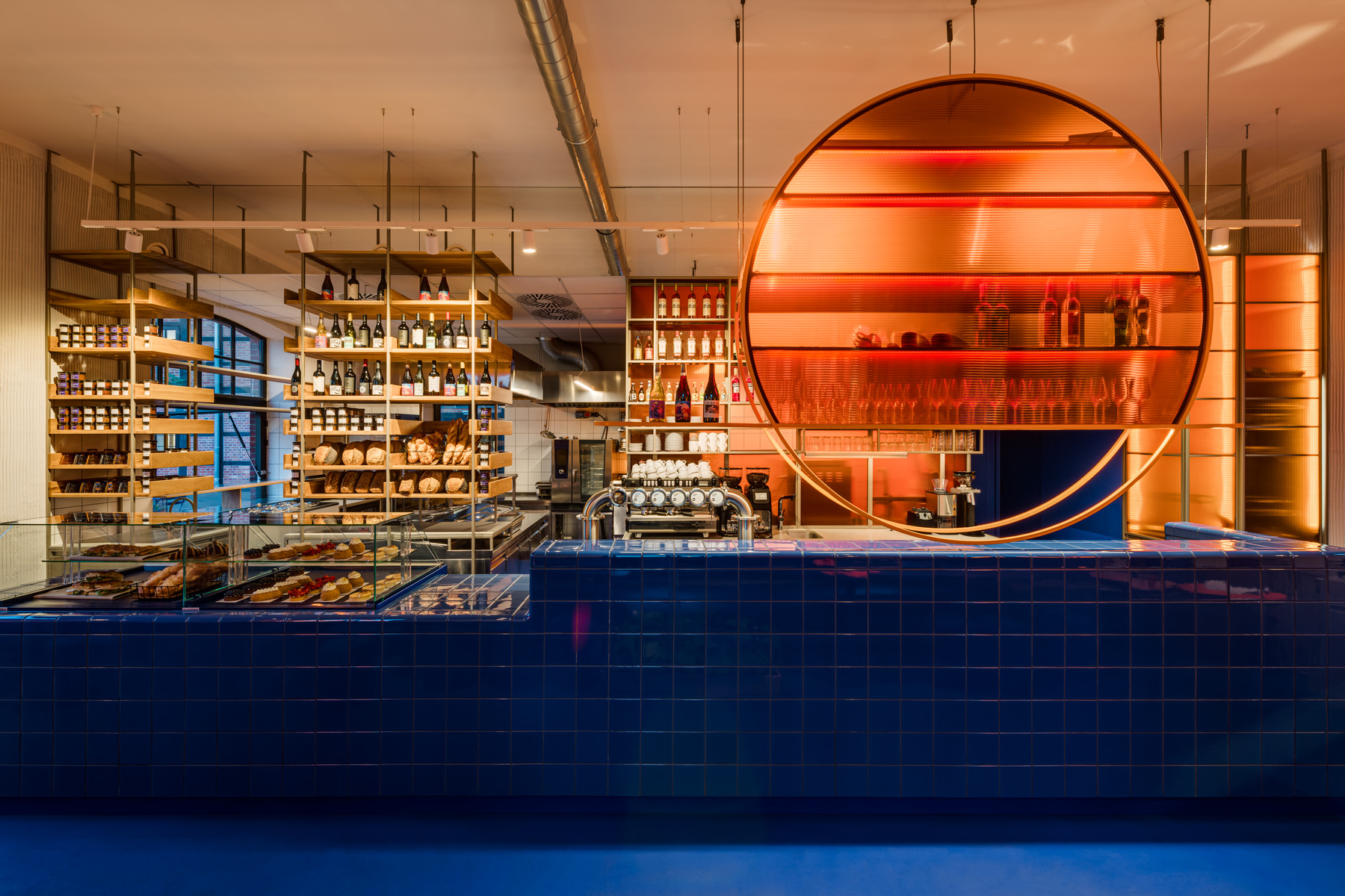 To pierwsza klubopiekarnia w Polsce, gdzie oprócz pysznego pieczywa można doświadczyć czegoś więcej. Wieczorem lokal zamienia się w klub, oferując szeroki wybór kieliszków z polskim winem i kufli z rzemieślniczym piwem. Ta podwójna charakterystyka idealnie odzwierciedla się w wnętrzu zaprojektowanym przez renomowaną wrocławską pracownię Znamy Się oraz architekta Pawła Tatara. Wnętrze to połączenie mocnego kobaltu i ciepłego odcienia pomarańczu, które symbolizują harmonijną mieszankę dwóch energii – dnia i nocy, oraz wody i słońca.