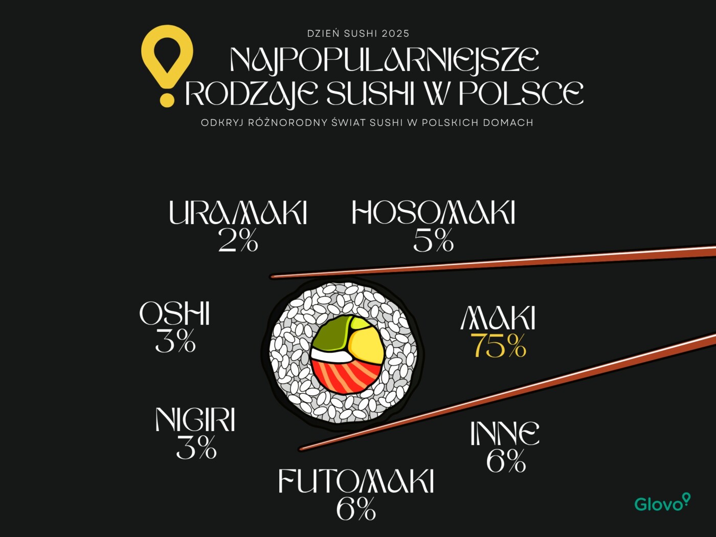 Rosnąca popularność sushi to dowód na zmieniające się nawyki żywieniowe Polaków, którzy coraz chętniej sięgają po kuchnię lekką, zdrową i różnorodną. Niezależnie od tego, czy to szybki lunch, romantyczna kolacja, czy zamówienie na niemal tysiąc złotych – sushi zawsze dobrze wygląda, świetnie smakuje i nigdy się nie nudzi. A dane z Glovo pokazują, że ten japoński przysmak na dobre zagościł w naszych domach i… w aplikacjach.