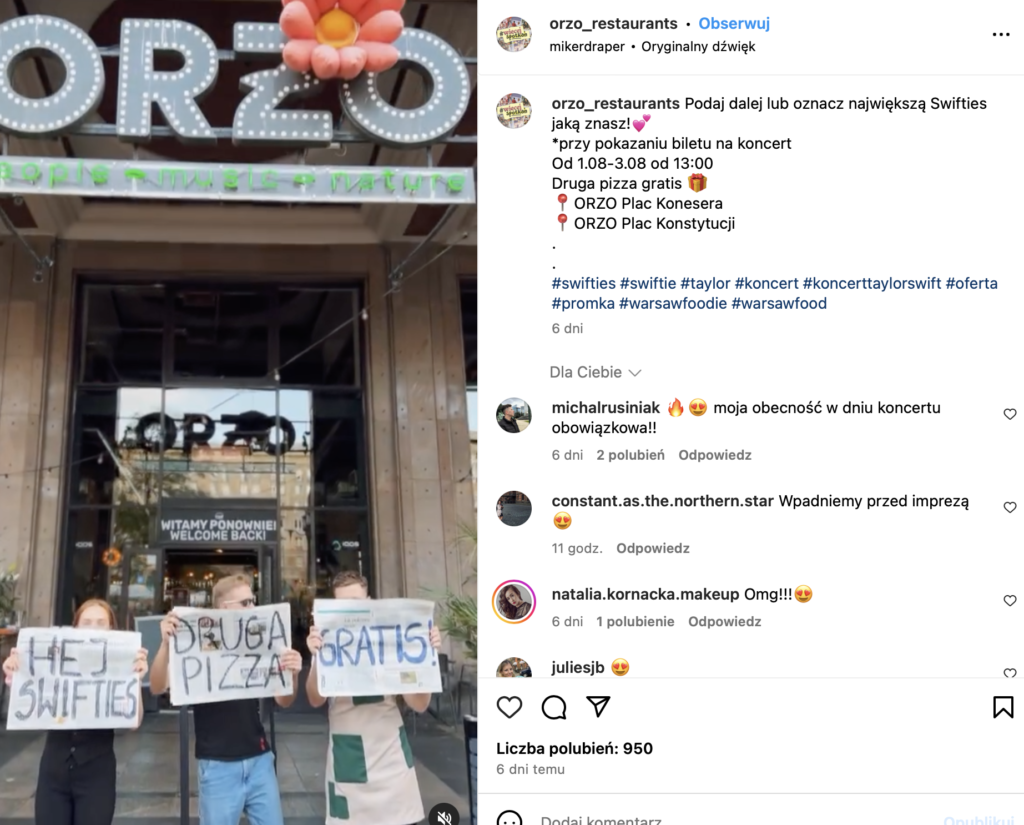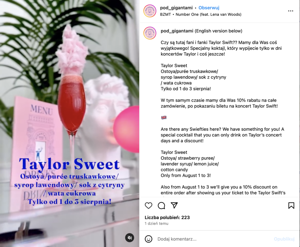 Nie da się ukryć, że warszawskie restauracje wykorzystały historyczny moment w trasie koncertowej Taylor. Uwielbiamy obserwować, jak skutecznie działa real-time marketing! Zanim zobaczymy się na koncercie, dajcie znać, z której okazji skorzystacie w ten weekend!