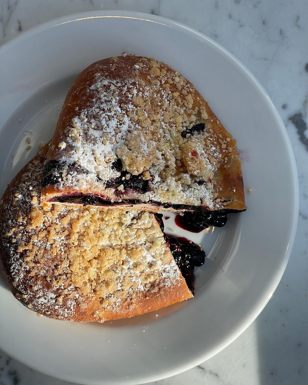 Zestawienie tegorocznych jagodzianek nie mogłoby się odbyć bez propozycji Słodki Słony Magdy i Lary Gessler. W tym roku cena jednej jagodzianki to 31 złotych, a chętnych na jej zakup – jak zwykle – nie brakuje. Drożdżówki są wypełnione wyłącznie świeżymi jagodami, zdobi je gruba warta kruszonki i cukru pudru. Wiele osób określa je jako ,,najlepsze w Warszawie”. Czy Wy też podzielacie tę opinię?